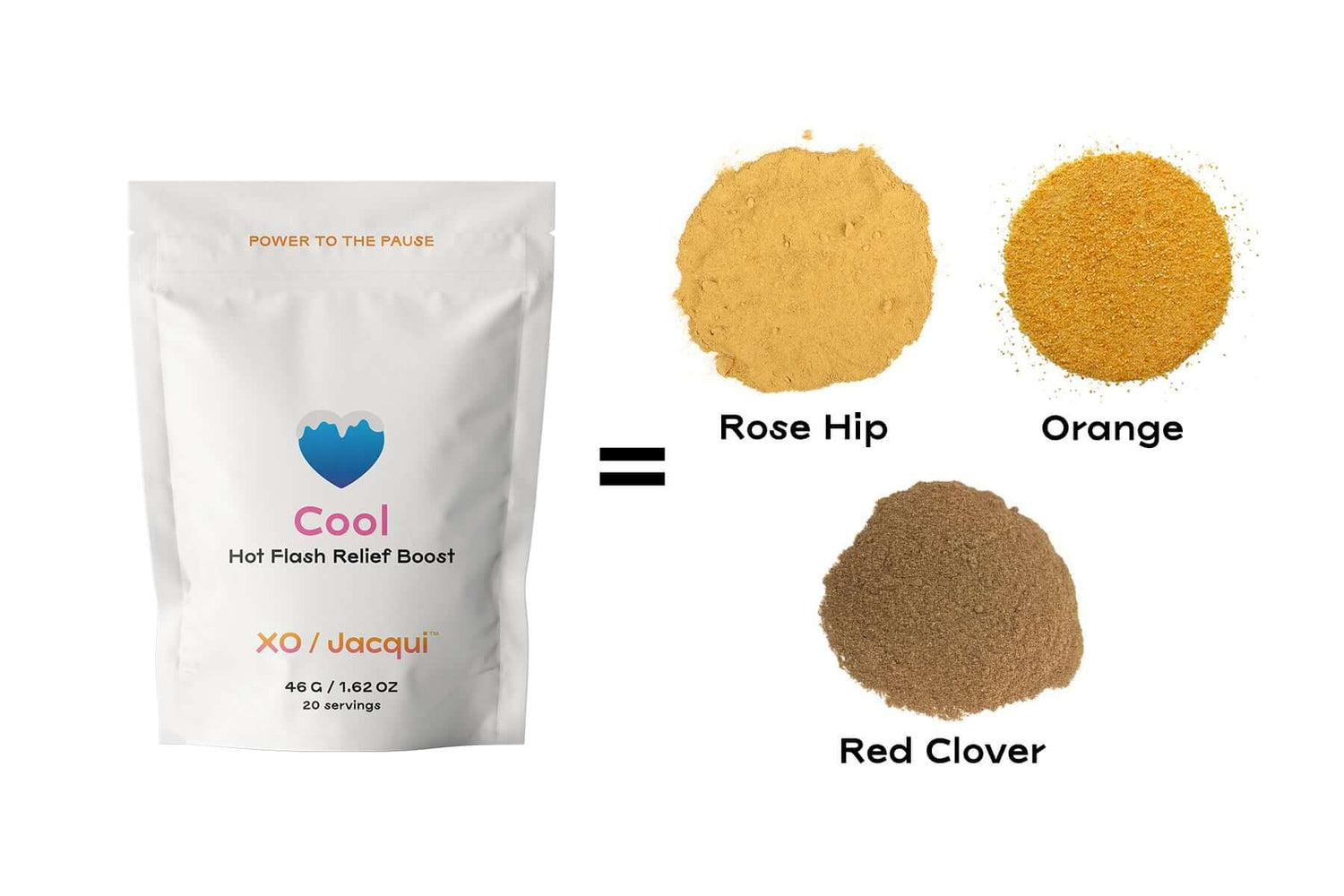 Cool Hot Flash Relief BoostRed clover is rich in isoflavones, which mimic estrogen, helping to stabilize hormonal fluctuations that trigger hot flashes. Rose hip, packed with vitamin C and antioxidants, supports immune health and aids in skin hydration, which can be affected during a hot flash. Oranges contain folate and other B vitamins that support mood regulation and enhance absorption of the isoflavones in red clover.